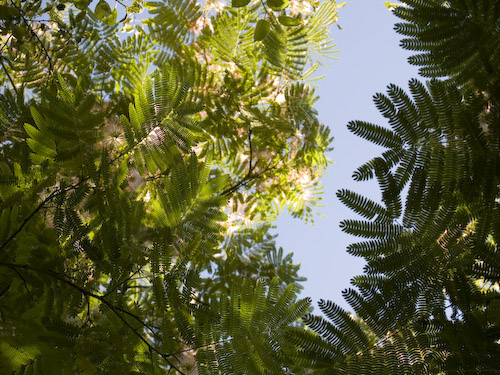 My father and I felled the 30′ mimosa tree in my back garden. Thanks to a combination of good fortune, my weight on the end of some well-placed dropes, and Dad’s mad skills with a chainsaw and a come-along, we did this without damaging the cars, the fence, the garage, the house, my mother, or ourselves. RIP, mimosa. Its pink blossoms were a sheer delight, but it split down the bole during the wind storms and couldn’t survive.