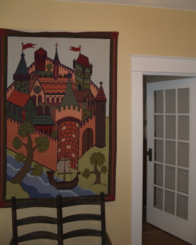 We hung my grandmother’s beautiful needlework tapestry in my entry way.